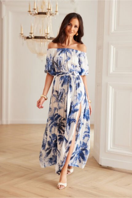 Rochie mini cu mâneci lungi. Partea de sus tip plic, iar partea de jos ușor evazată. Nu are căptușeală, este închisă cu o legătură dublă în talie.
